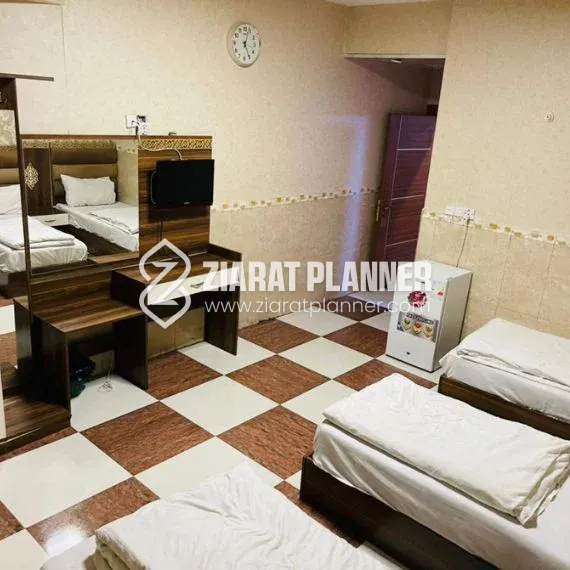 Guests can easily explore the bustling markets, local restaurants, and cultural landmarks that surround the area, fully immersing themselves in the unique atmosphere of Karbala. Whether you’re visiting for Ziarat or to experience the city’s deep spiritual heritage, the hotel provides a restful retreat after a meaningful day.