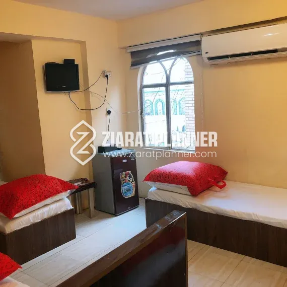 Hotel Safa is a comfortable and conveniently located hotel situated on Bab Baghdad Street in the heart of Karbala. Located at J29P+FC4, Bab Baghdad Street, Karbala, this hotel offers easy access to the Holy Shrines of Imam Hussain A.S. and Imam Abbas A.S., making it an ideal choice for pilgrims and visitors seeking proximity to Karbala’s most revered religious sites.
