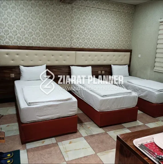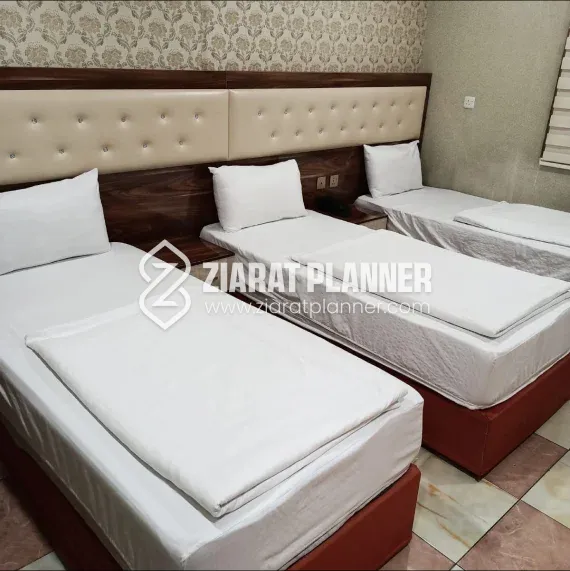 Hotel Hayat 2 is a modern and comfortable hotel located on Bab Al Khan Street in Karbala, offering an ideal stay for both pilgrims and tourists. Situated at J2CP+5WQ, Karbala, the hotel is strategically positioned near the Holy Shrine of Imam Hussain A.S. and the Holy Shrine of Mola Abbas A.S., making it an excellent choice for those visiting Karbala for religious purposes, spiritual reflection, or cultural exploration. The hotel’s prime location on Bab Al Khan Street provides easy access to various attractions and services within Karbala. Guests can explore local shops, restaurants, and markets, allowing them to experience the vibrant culture of Karbala while being close to the sacred sites. Whether you are visiting for a pilgrimage, to discover the rich history of the city, or to enjoy the local sights, Hotel Hayat 2 offers the perfect retreat. Hotel Hayat 2 offers well-maintained rooms designed for comfort and convenience. The rooms are equipped with modern amenities to ensure that every guest has a relaxing and enjoyable stay. Whether traveling alone, with family, or in a group, the hotel provides spacious accommodations to suit a variety of needs. The hotel’s professional and friendly staff are dedicated to offering exceptional service, ensuring that every guest’s stay is pleasant and memorable. With its convenient location, comfortable accommodations, and outstanding service, Hotel Hayat 2 is an excellent choice for anyone visiting Karbala.
