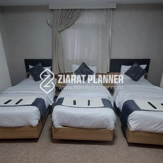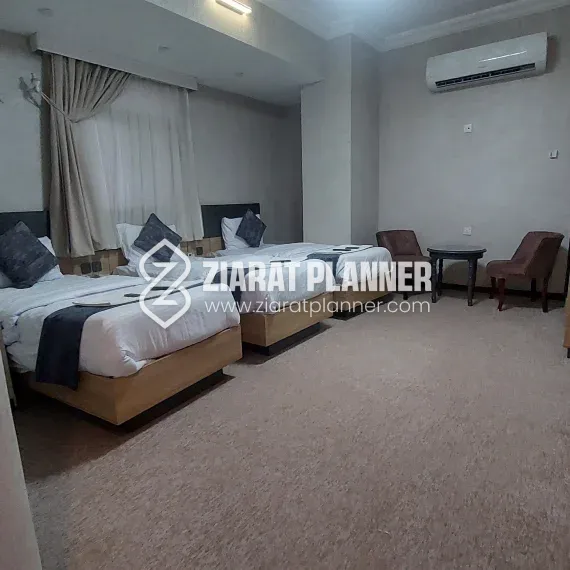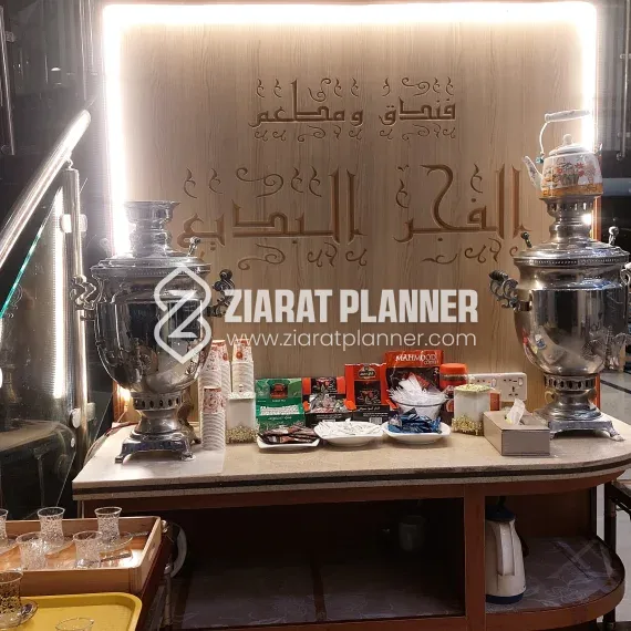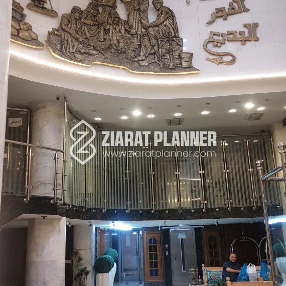 Hotel Fajr Al Badi is a conveniently located hotel in Karbala, offering a peaceful and comfortable stay for pilgrims and tourists alike. Situated on Bab Al Khan Street, near the Sharah Al Qami, and just a short distance from the Sh. Al Qami Checkpost, the hotel provides easy access to Karbala’s significant religious sites, including the Holy Shrine of Mola Abbas A.S., making it an ideal choice for those visiting for spiritual purposes.