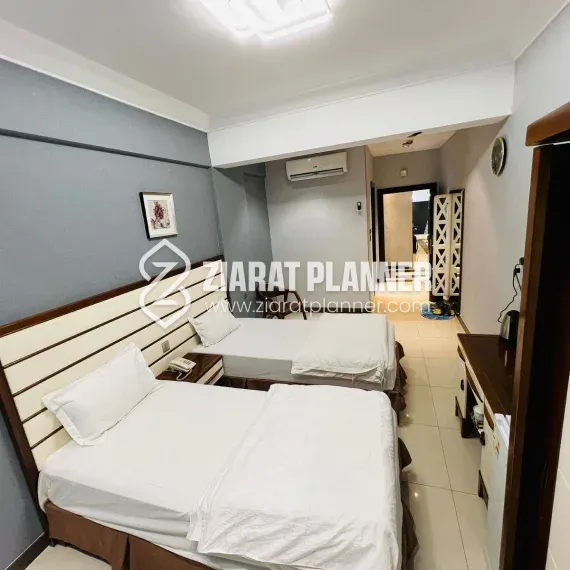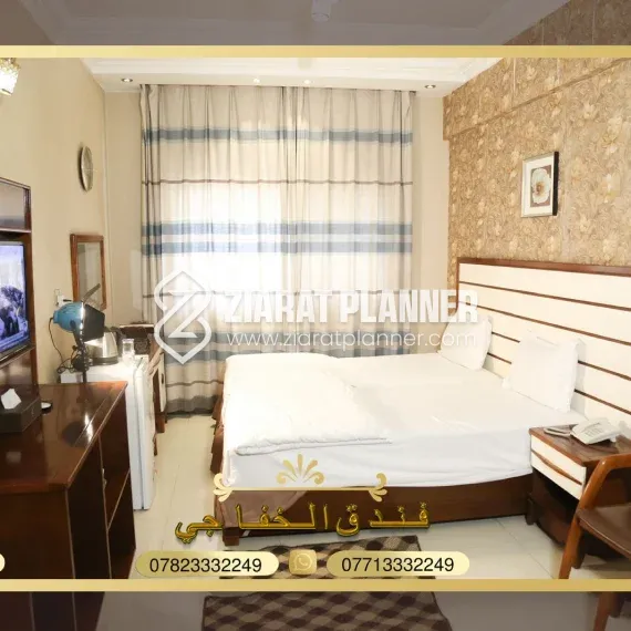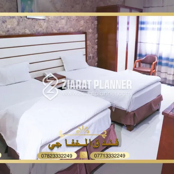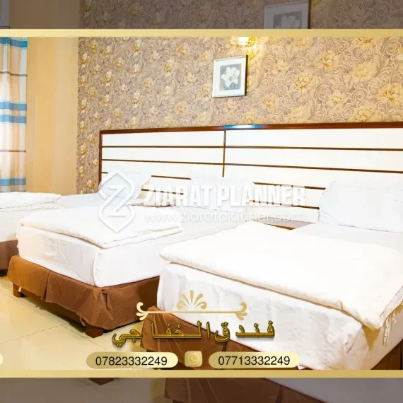 The hotel offers a range of well-furnished rooms, each designed with the guest’s comfort in mind. Rooms come equipped with modern amenities such as air conditioning, high-speed internet, flat-screen televisions, and 24/7 room service. Whether you’re visiting for spiritual reasons, business, or leisure, Hotel Khafaji provides the perfect environment for relaxation and peace after a long day of exploring or worshipping.