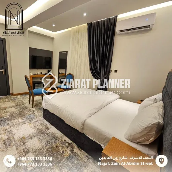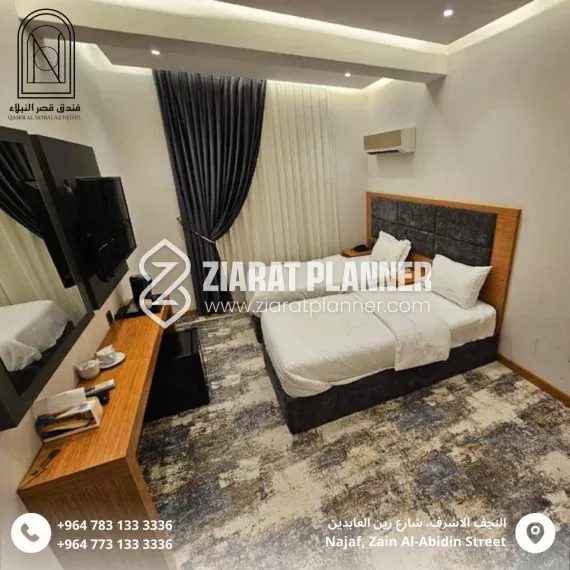 The hotel features spacious and elegantly designed rooms, equipped with modern amenities to ensure a relaxing and comfortable stay. Whether you are visiting Najaf for its religious significance, cultural heritage, or historical landmarks, Hotel Qaser Al Nobala offers a peaceful environment to unwind after a day of exploration or prayer.