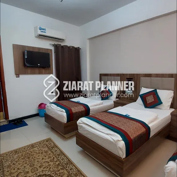 Hotel Tawaf is a conveniently located hotel on Bab E Baghdad Street in Karbala, offering a comfortable and welcoming stay for both pilgrims and visitors. Located at J29Q+FJJ, Karbala, the hotel is just a short distance from the Holy Shrine of Mola Abbas A.S., making it an excellent choice for those coming to Karbala for spiritual purposes, prayer, or sightseeing.
