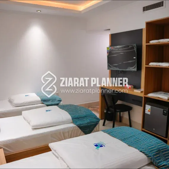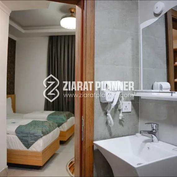 The hotel features a variety of well-furnished rooms designed for both comfort and convenience. Each room is equipped with modern amenities such as air conditioning, high-speed internet access, and flat-screen TVs, ensuring that guests have everything they need for a relaxing stay. Whether you’re visiting for spiritual reasons, business, or leisure, Hotel Twaf provides a tranquil environment to rest and unwind.